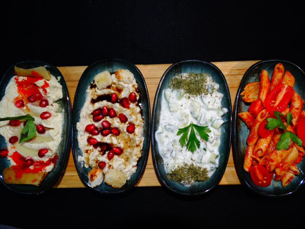 تشكيلة من المقبلات الباردة الغنية بالنكهات التقليدية والمكونات الطازجة، مثالية لبدء وجبتك